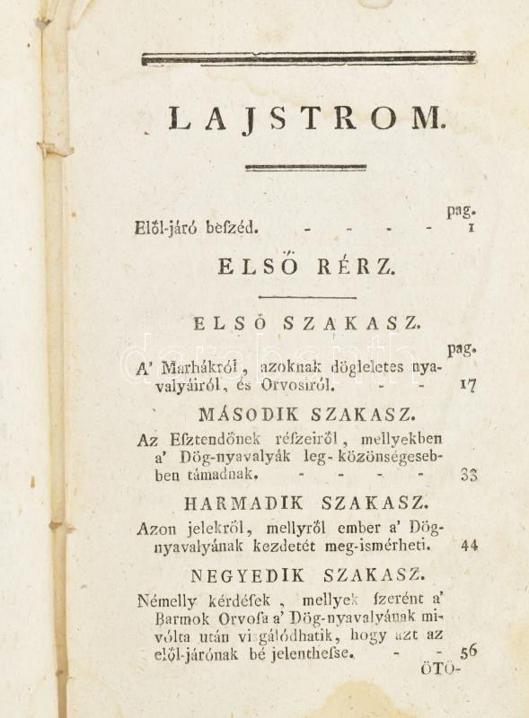 Pesten, 1795. Füskúti Landerer Mihály ny. 14)+309+(2)p.+ 2 kihajt. mell (a 3 ból) Rézmetszetű címkép hiányzik, kötés nélkül.