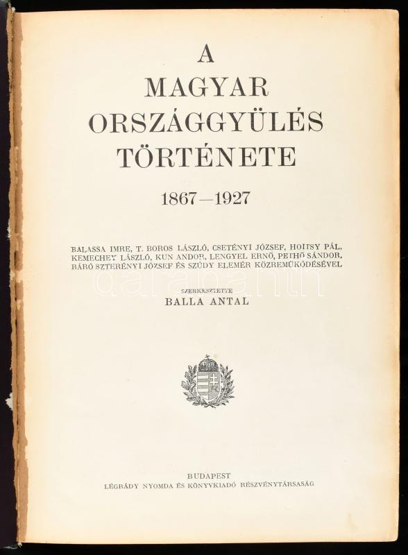 A magyar országgyűlés története 1867-1927. Szerk. Balla Antal. Bp.,(19... https://www.darabanth.com/en/444-Online-auction/444.0/Books/Books-History~1500012/A-magyar-orszaggyules-tortenete-1867-1927-Szerk-Balla-Antal-Bp-1927-Legrady-540-p-Sz~II2870964