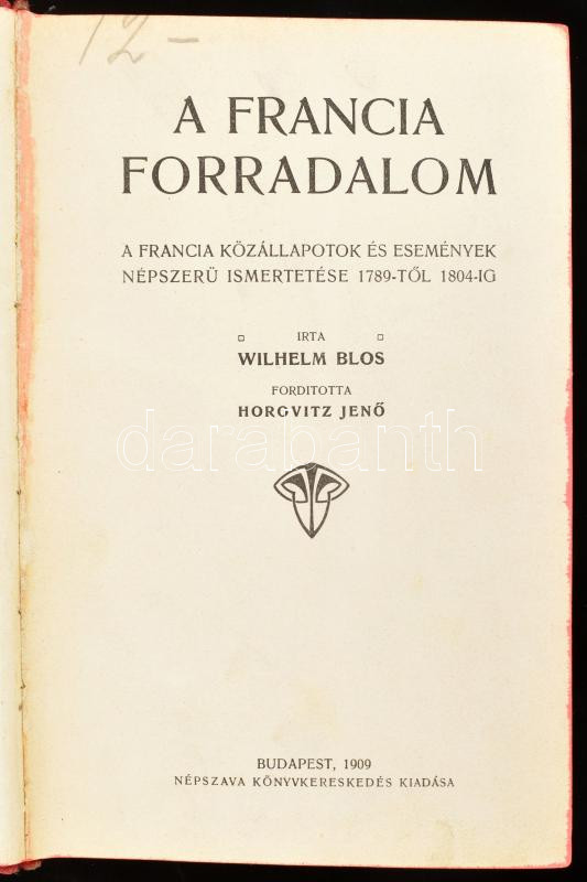Blos, Wilhelm: A francia forradalom. A francia közállapotok és esemény... https://www.darabanth.com/en/444-Online-auction/444.0/Books/Books-History~1500012/Blos-Wilhelm-A-francia-forradalom-A-francia-kozallapotok-es-esemenyek-nepszeru-ismertetese~II2928718