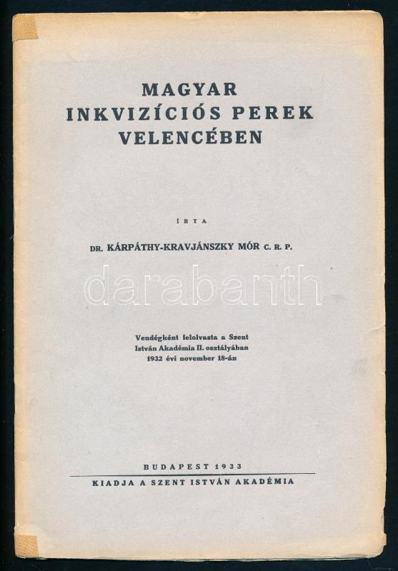 Dr. Kárpáthy-Kravjánszky Mór: Magyar inkvizíciós perek Velencében. Bp.... https://www.darabanth.com/en/444-Online-auction/444.0/Books/Books-History~1500012/Dr-Karpathy-Kravjanszky-Mor-Magyar-inkvizicios-perek-Velenceben-Bp-1933-Szent-Istvan-A~II2934064