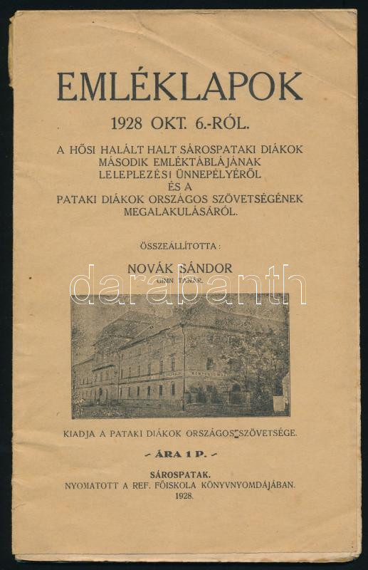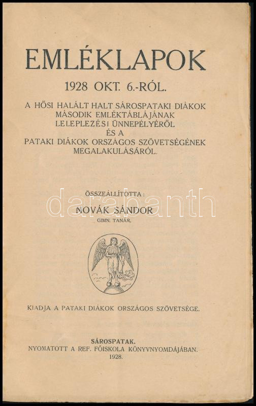 Emléklapok 1928. okt. 6.-ról. A hősi halált halt sárospataki diákok má... https://www.darabanth.com/en/444-Online-auction/444.0/Books/Books-History~1500012/Emleklapok-1928-okt-6-rol-A-hosi-halalt-halt-sarospataki-diakok-masodik-emlektablajan~II2905544