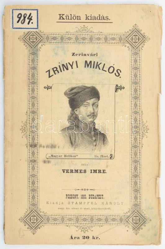 Vermes Imre: Zerinvári Zrínyi Miklós életrajza. Pozsony-Bp., 1883., St... https://www.darabanth.com/en/444-Online-auction/444.0/Books/Books-History~1500012/Vermes-Imre-Zerinvari-Zrinyi-Miklos-eletrajza-Pozsony-Bp-1883-Stampfel-Karoly-28-p-Kiad~II2900809
