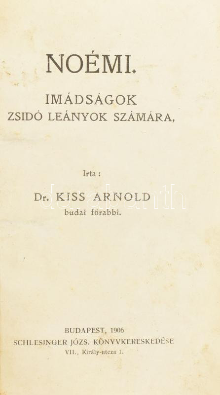 Dr. Kiss Arnold: Noémi. Imádságok zsidó leányok számára. Bp., 1906, Sc... https://www.darabanth.com/en/444-Online-auction/444.0/Books/Books-Judaica~1500022/Dr-Kiss-Arnold-Noemi-Imadsagok-zsido-leanyok-szamara-Bp-1906-Schlesinger-Jozs-Mark~II2925483