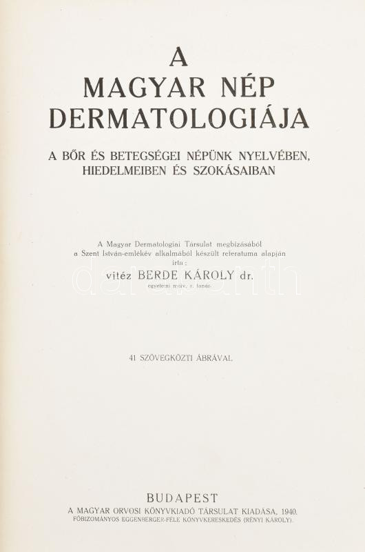 Berde Károly.: A magyar nép dermatológiája. A bőr és betegségei népünk... https://www.darabanth.com/en/444-Online-auction/444.0/Books/Books-Natural-sciences-Medicine~1500017/Berde-Karoly-A-magyar-nep-dermatologiaja-A-bor-es-betegsegei-nepunk-nyelveben-hiedelme~II2927497