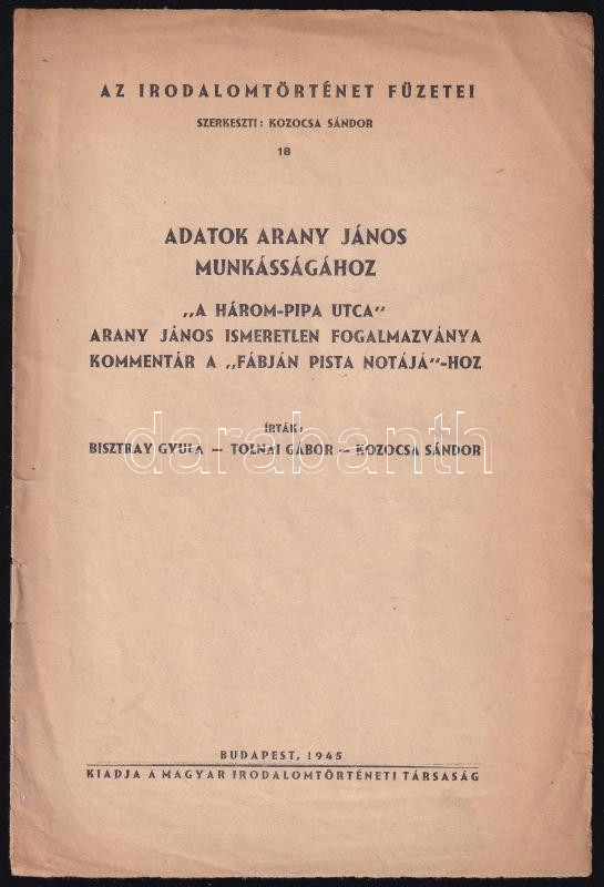Bisztray Gyula - Tolnai Gábor - Kozocsa Sándor: Adatok Arany János mun... https://www.darabanth.com/en/444-Online-auction/444.0/Books/Books-Other-rarities~1500027/Bisztray-Gyula-Tolnai-Gabor-Kozocsa-Sandor-Adatok-Arany-Janos-munkassaghoz-A-harom-pip~II2898400