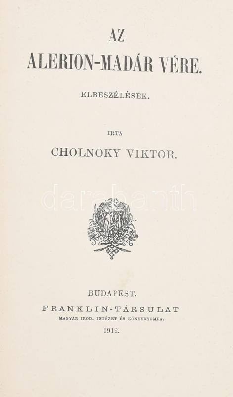 https://www.darabanth.com/en/444-Online-auction/444.0/Books/Books-Other-rarities~1500027/Cholnoky-Viktor-Az-alerion-madar-vere-Elbeszelesek-Bp-1912-Franklin-Elso-kiadas-Korab~II2716724