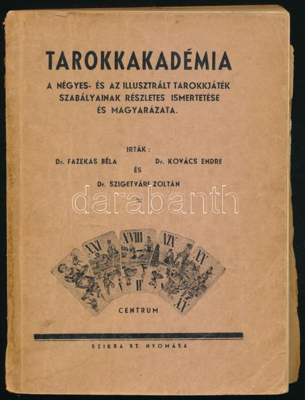 Fazekas Béla - Kovács Endre - Szigetvári Zoltán: Tarokkakadémia. A nég... https://www.darabanth.com/en/444-Online-auction/444.0/Books/Books-Other-rarities~1500027/Fazekas-Bela-Kovacs-Endre-Szigetvari-Zoltan-Tarokkakademia-A-negyes-es-az-illusztralt~II2929533