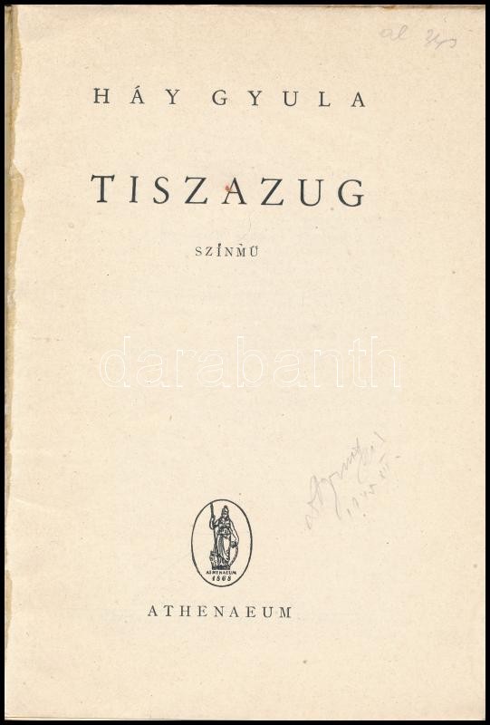 https://www.darabanth.com/en/444-Online-auction/444.0/Books/Books-Other-rarities~1500027/Hay-Gyula-Tiszazug-Szinmu-Bp-1945-Athenaeum-80-p-Elso-kiadas-Kiadoi-papirkotes-a~II2716817