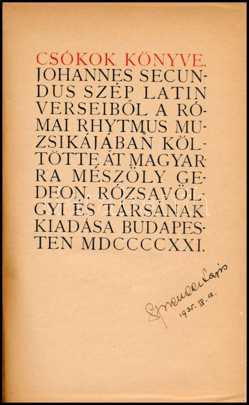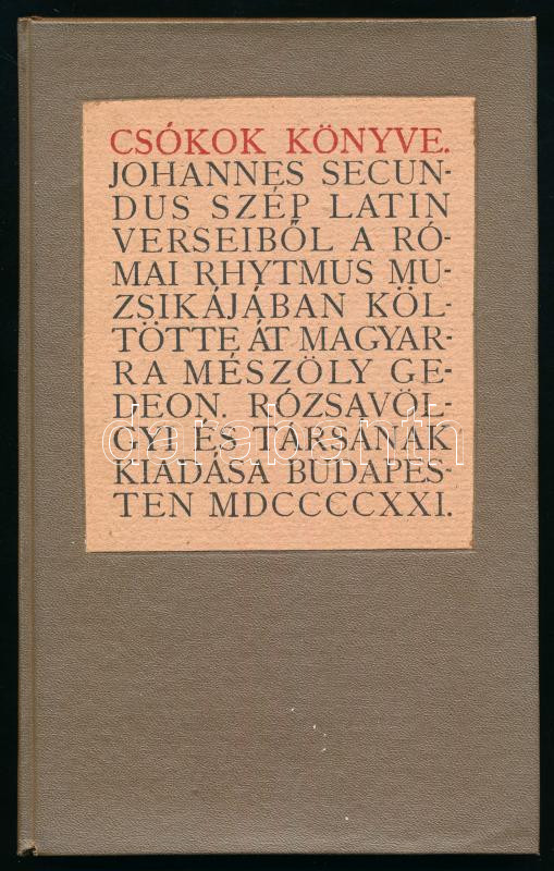 Johannes Secundus: Csókok könyve. Ford.: Mészöly Gedeon. Bp., 1921, Ró... https://www.darabanth.com/en/444-Online-auction/444.0/Books/Books-Other-rarities~1500027/Johannes-Secundus-Csokok-konyve-Ford-Meszoly-Gedeon-Bp-1921-Rozsavolgyi-es-Tarsa-33~II2889763