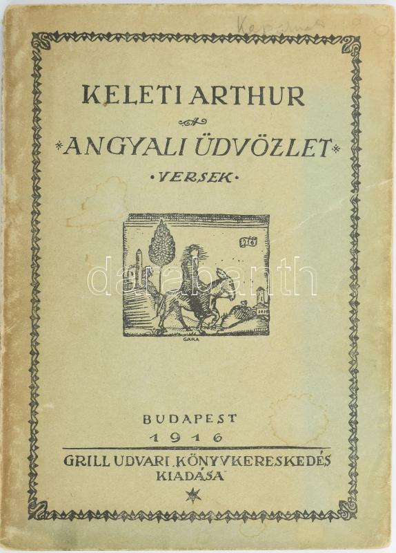 Keleti Arthur: Angyali üdvözlet. Litániák. Bp., 1916., Grill, 68+2 p. ... https://www.darabanth.com/en/444-Online-auction/444.0/Books/Books-Other-rarities~1500027/Keleti-Arthur-Angyali-udvozlet-Litaniak-Bp-1916-Grill-68plus2-p-Elso-kiadas-A-borito-~II2901282