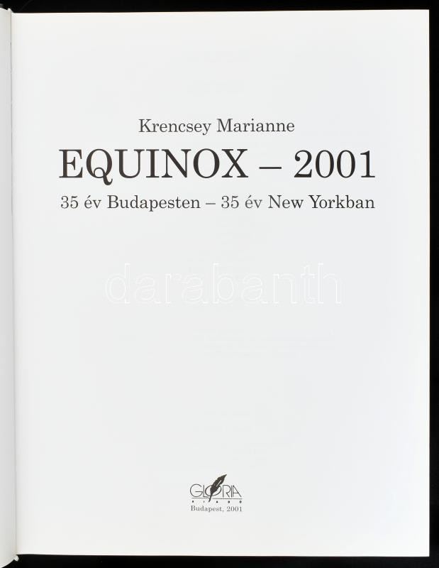 Krencsey Marianne: Equinox - 2001. 35 év Budapesten - 35 év New Yorkba... https://www.darabanth.com/en/444-Online-auction/444.0/Books/Books-Other-rarities~1500027/Krencsey-Marianne-Equinox-2001-35-ev-Budapesten-35-ev-New-Yorkban-Bp-2001-Gloria-Gazdag~II2826482