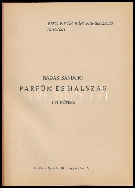 https://www.darabanth.com/en/444-Online-auction/444.0/Books/Books-Other-rarities~1500027/Nadas-Sandor-Parfum-es-halszag-Uti-dolgozatok-Bp-1926-Pesti-Futar-Kiadoi-felvaszon-k~II2717885