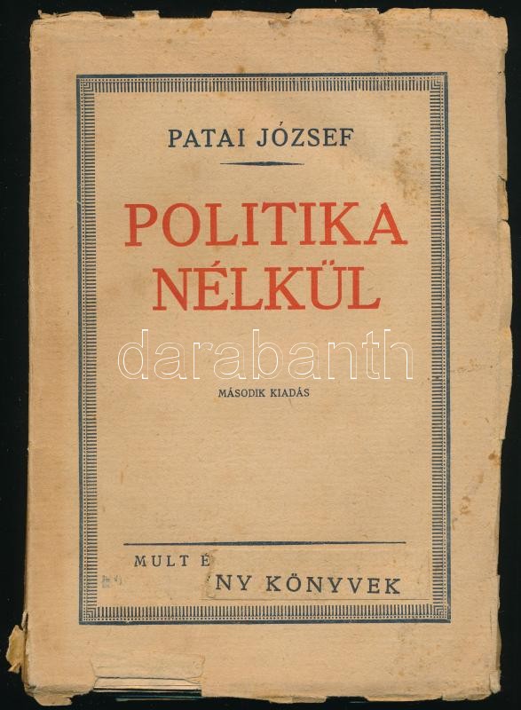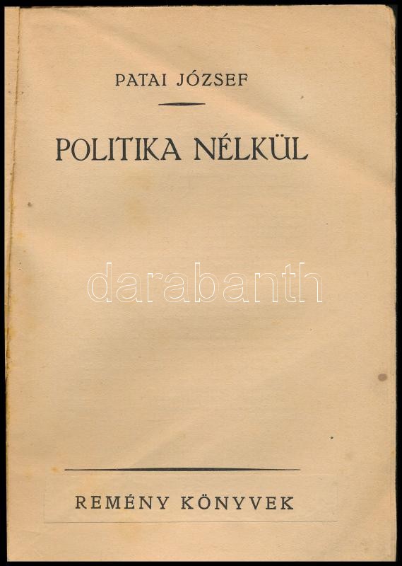 https://www.darabanth.com/en/444-Online-auction/444.0/Books/Books-Other-rarities~1500027/Patai-Jozsef-Politika-nelkul-Remeny-Konyvek-Bp-1923-Mult-es-Jovo-Kiadoi-papirko~II2717898