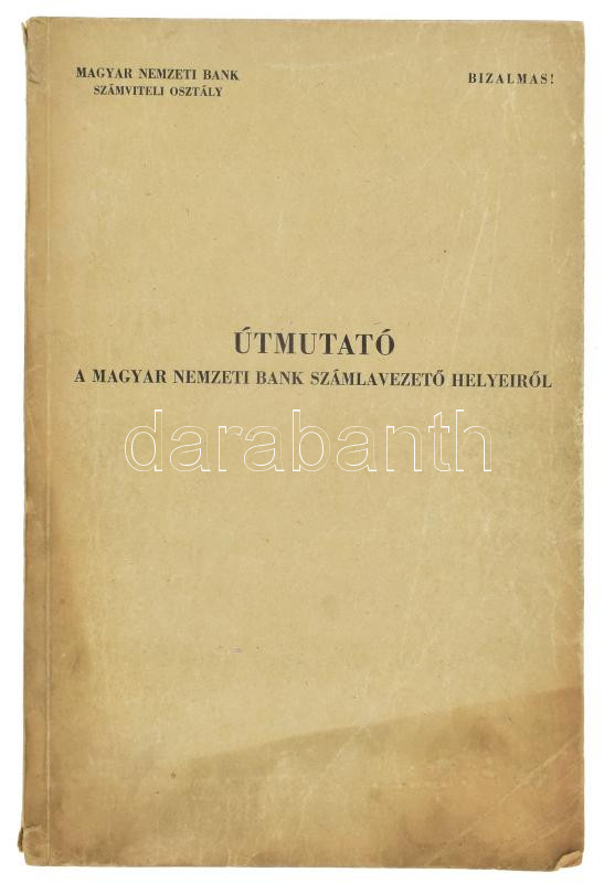 Útmutató a Magyar Nemzeti Bank számlavezető helyeiről. "Bizalmas&... https://www.darabanth.com/en/444-Online-auction/444.0/Books/Books-Other-rarities~1500027/Utmutato-a-Magyar-Nemzeti-Bank-szamlavezeto-helyeirol-Bizalmas-Bp-1957-Magyar-Nemzeti-Ban~II2934315