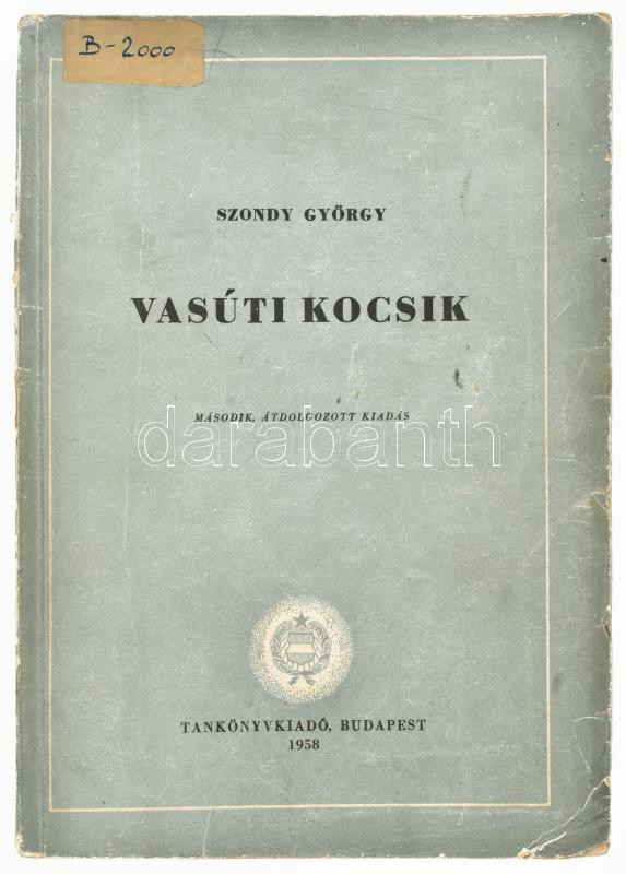 Szondy György: Vasúti kocsik. Bp., 1958, Tankönyvkiadó, 399+(1) p. Más... https://www.darabanth.com/en/444-Online-auction/444.0/Books/Books-Railways-locomotives~1500021/Szondy-Gyorgy-Vasuti-kocsik-Bp-1958-Tankonyvkiado-399plus1-p-Masodik-atdolgozott-kiada~II2925803