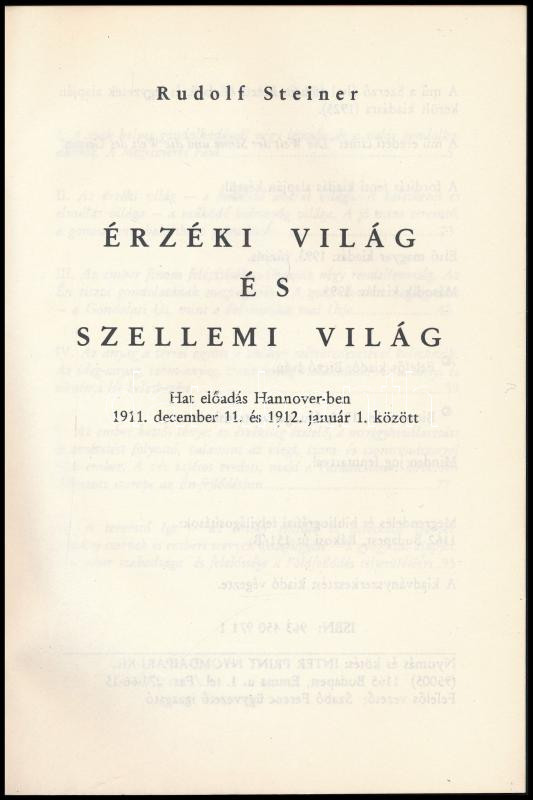 Rudolf Steiner: Érzéki világ és szellemi világ. Ford.: Biczó István. B...