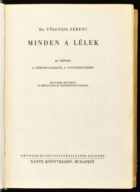 Völgyesi Ferenc: Minden a lélek. A démonológiától a gyógyhipnózisig. B... https://www.darabanth.com/en/444-Online-auction/444.0/Books/Books-Social-sciences~1500019/Volgyesi-Ferenc-Minden-a-lelek-A-demonologiatol-a-gyogyhipnozisig-Bp-1943-Dante-Negye~II2912829