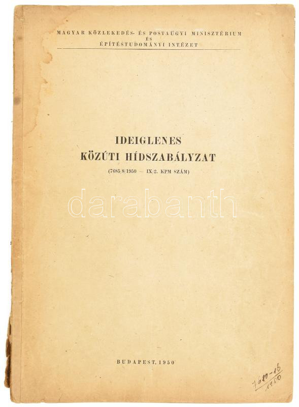 https://www.darabanth.com/en/444-Online-auction/444.0/Books/Books-Technics~1500020/Ideiglenes-kozuti-hidszabalyzat-Bp-1950-Magyar-Kozlekedes-es-Postaugyi-Miniszterium-~II2929367