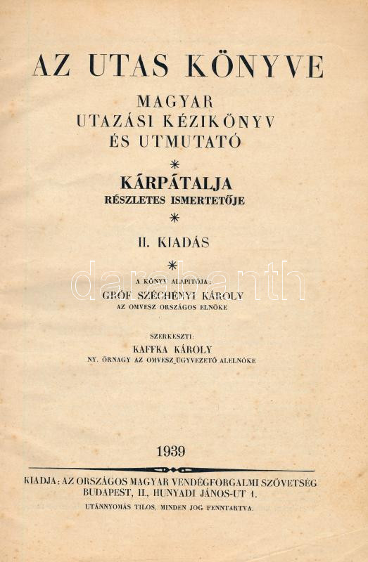 Az utas könyve. Magyar utazási kézikönyv és útmutató. Kárpátalja részl... https://www.darabanth.com/en/444-Online-auction/444.0/Books/Books-Travelling-Local-History~1500009/Az-utas-konyve-Magyar-utazasi-kezikonyv-es-utmutato-Karpatalja-reszletes-ismertetoje-1~II2935090