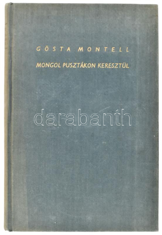 Gösta Montell: Mongol pusztákon keresztül. Sven Hedin előszavával. Ford.: Halász Gyula. Ismeretlen Világok. Bp.,1938, Athenaeum. Egészoldalas fekete-fehér képekkel illusztrált. Kiadói egészvászon-kötés, jó állapotban, fakó gerinccel.