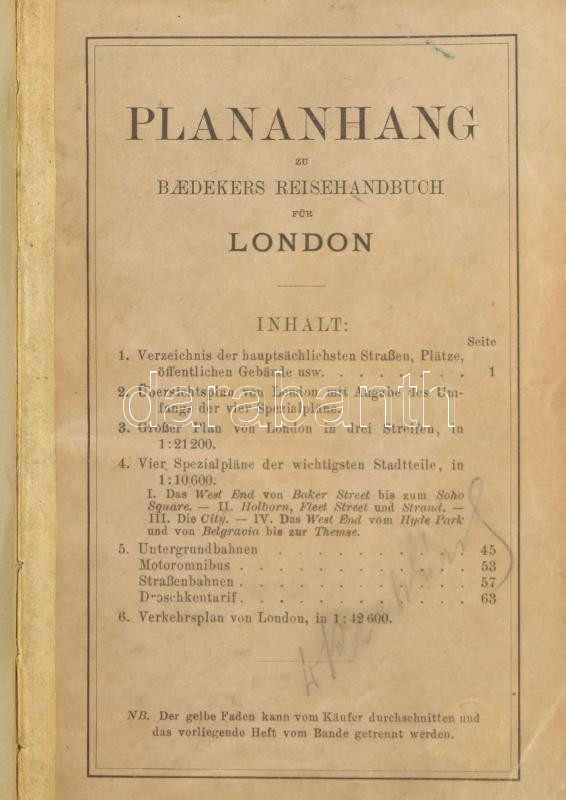 Plananhang zu Baedekers Reisehandbuch für London. Leipzig, 1912, Karl ... https://www.darabanth.com/en/444-Online-auction/444.0/Books/Books-Travelling-Local-History~1500009/Plananhang-zu-Baedekers-Reisehandbuch-fur-London-Leipzig-1912-Karl-Baedeker-Kihajthato-szine~II2926451