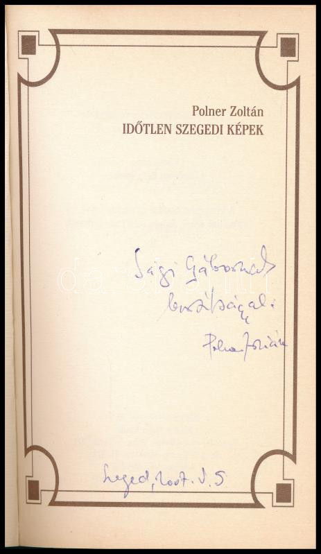 Polner Zoltán: Időtlen szegedi képek. Szeged, 2007, Bába Kiadó. Fekete-fehér fotókkal illusztrált. Kiadói papírkötés. A szerző által DEDIKÁLT példány.