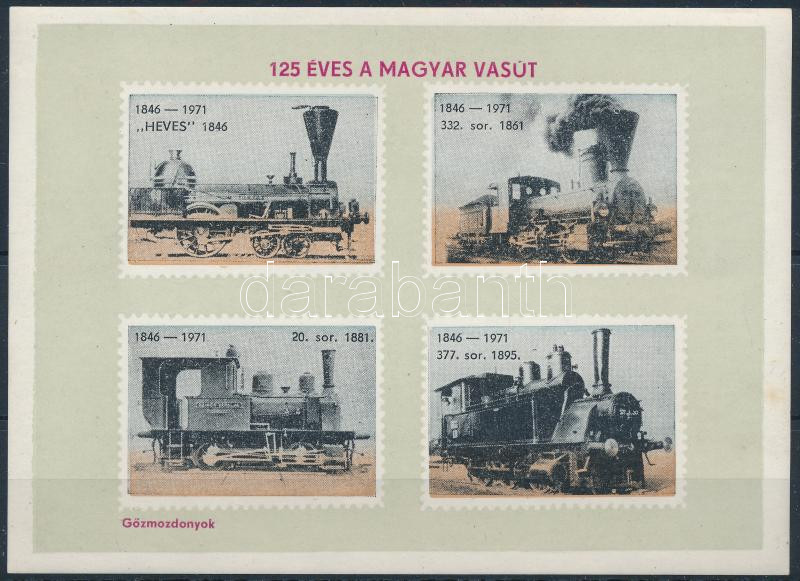 1971 125 éves a magyar vasút levélzáró blokk (betapadások)