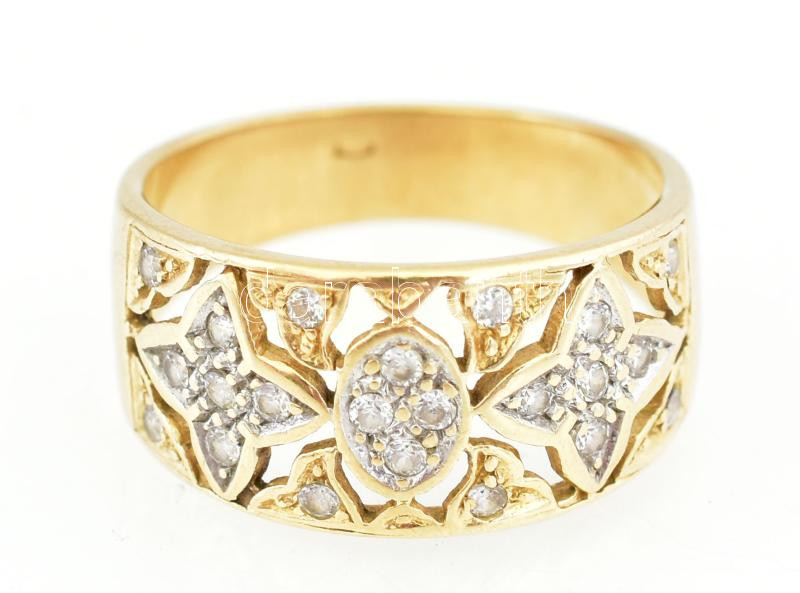 https://www.darabanth.com/en/444-Online-auction/444.0/Jewellery-and-precious-metal-items/Jewellery-and-precious-metal-items~1500028/14-K-arany-Au-gyuru-cirkoniaval-jelzett-meret-55-brutto-4-07-g~II2932950