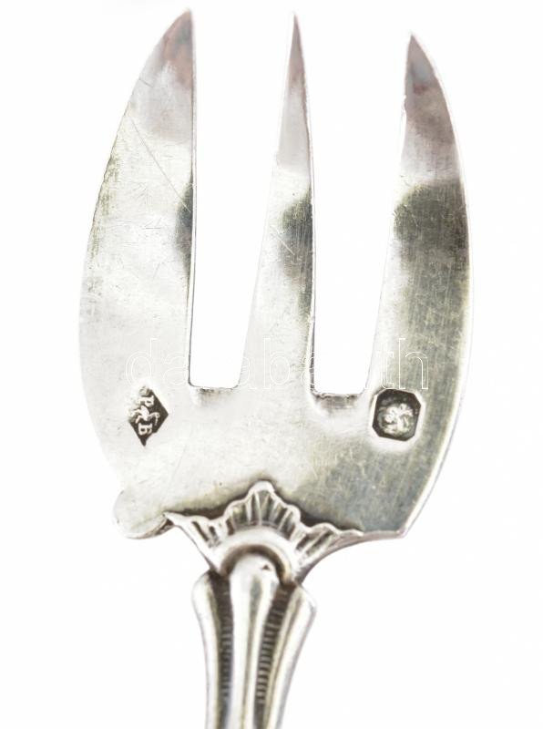 Ezüst (Ag) fejű, csont nyelű szervírozó villa, jelzéssel, h: 14 cm, br...