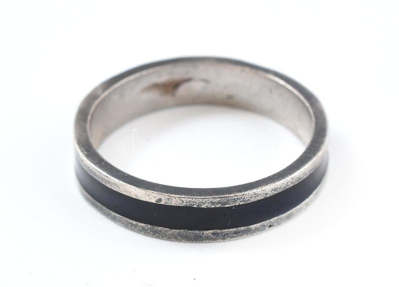 Ezüst (Ag) karikagyűrű fekete zománccal. Jelzett, bruttó: 3,4 g, m: 56