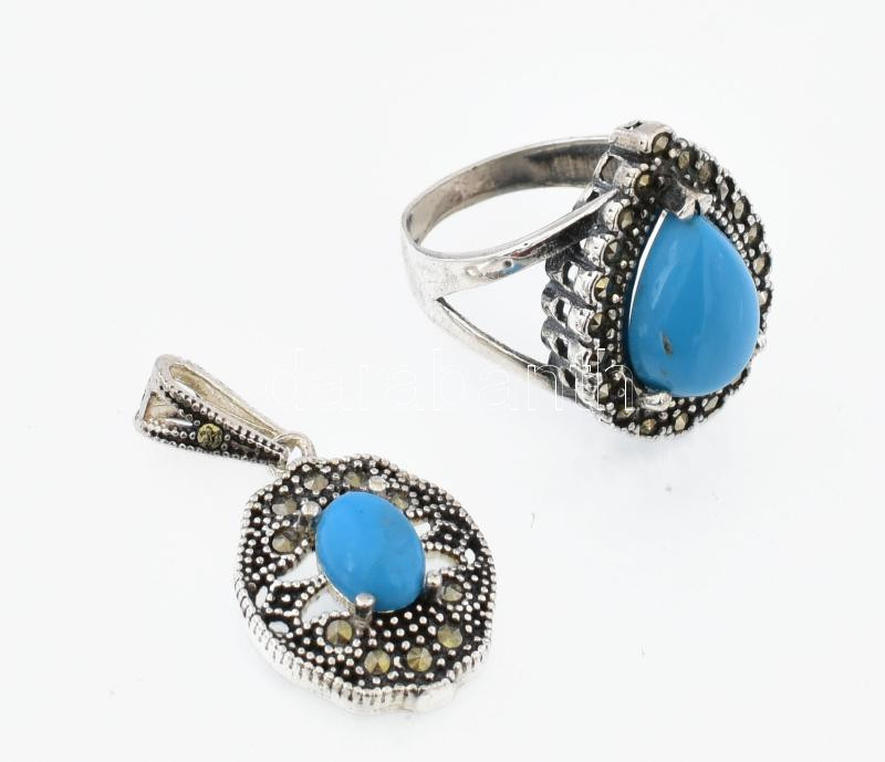 Ezüst (Ag) kék köves gyűrű és medál, jelzéssel és jelzés nélkül, brutt...