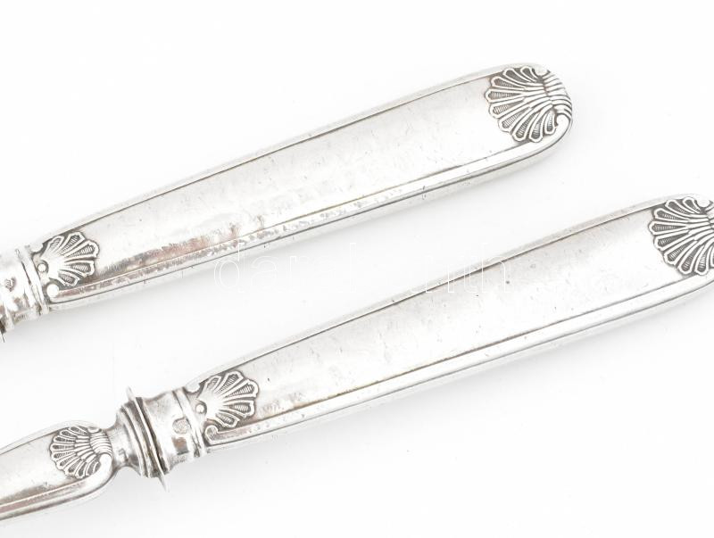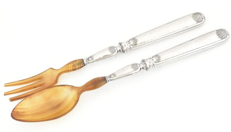 Ezüst (Ag) nyelű art deco salátás kanál és villa, jelzéssel, h: 27-28 ...