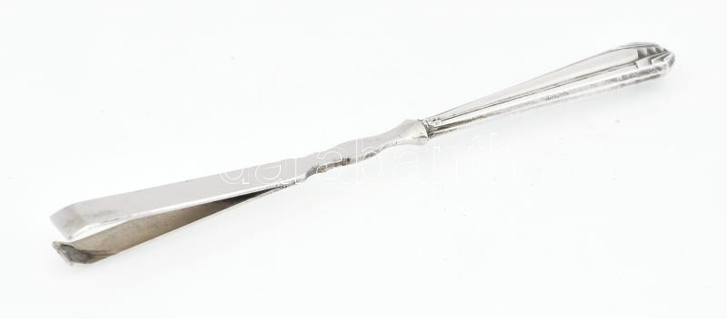 Ezüst (Ag) nyelű szervírozó csipesz, jelzéssel, h: 13 cm, bruttó: 12 g