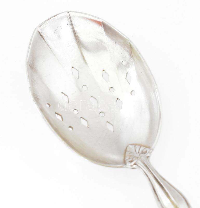 Ezüst (Ag) porcukorszóró kanál, jelzéssel, h: 16,5 cm, nettó: 36 g