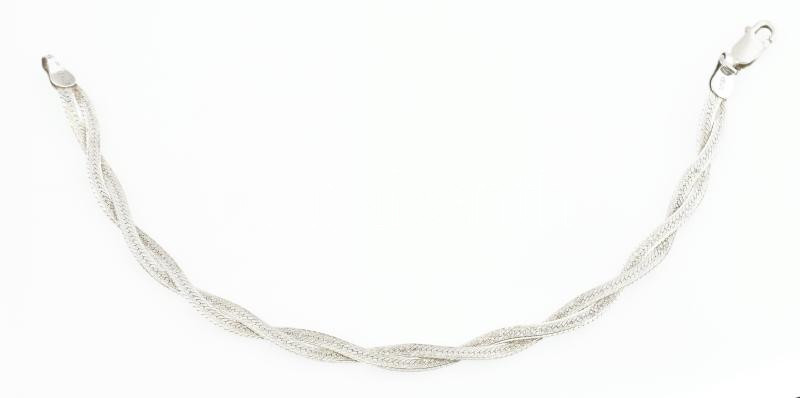 Ezüst(Ag) kétszálas fonott kígyó karkötő, jelzett, h: 19 cm, nettó: 4,1 g