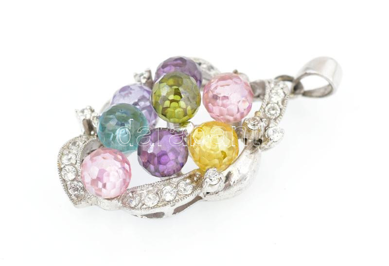 Ezüst(Ag) medál színes gyöngyökkel, jelzett, h: 3 cm, kőhiánnyal, bruttó: 11 g