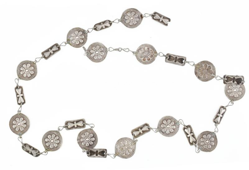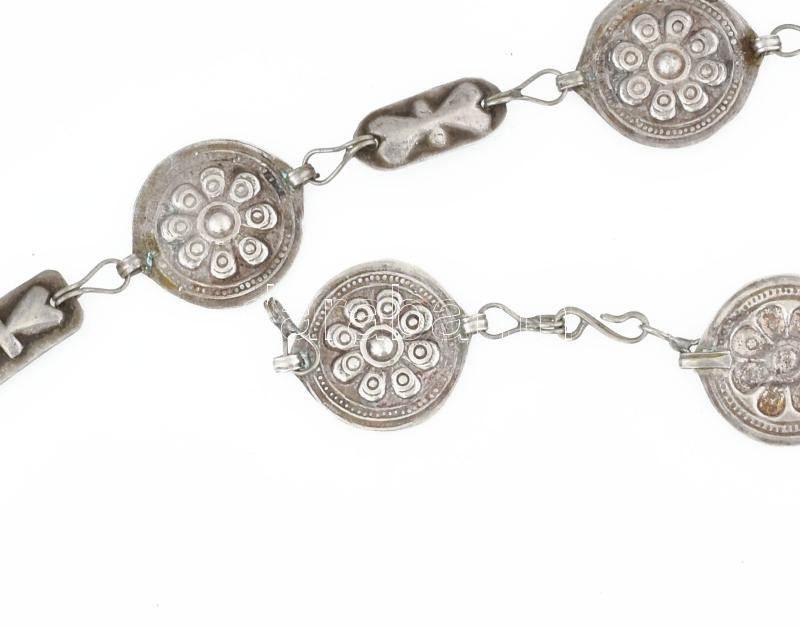 Türkmén, teke nyaklánc. Ezüst, kézzel készített XX. sz. jelzés nélkül, szakadással, 44 g 93 cm