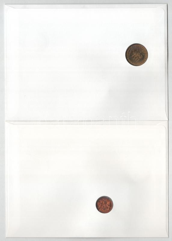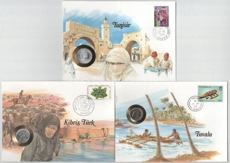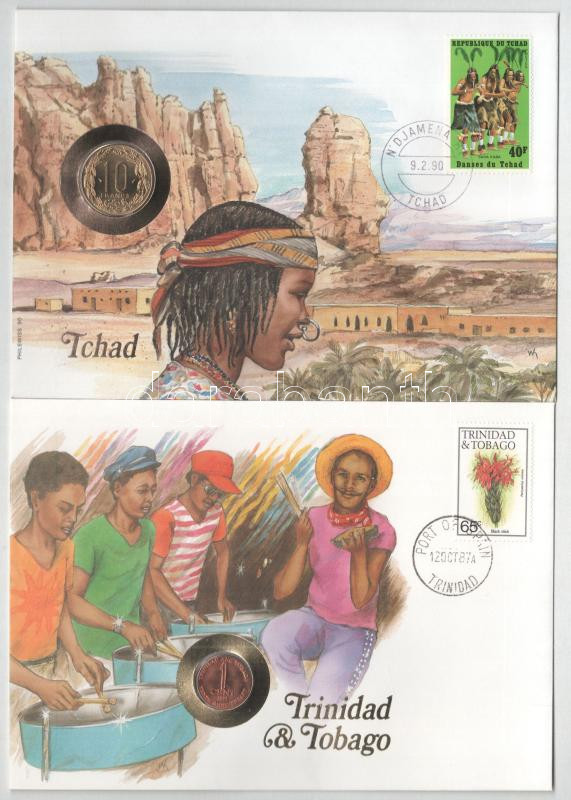 5db-os érmés boríték tétel, mind különféle és német nyelvű tájékoztatóval, benne: Tunézia, Ciprus, Tuvalu, Csád, Trinidad és Tobago