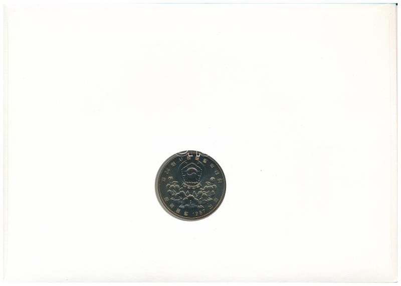 South Korea 1987. 1000 Won Cu-Ni "XXIV Summer Olympics 1988 Seoul - Tennis" non-circulating commemorative coin in envelope with stamp, cancellation and a prospectus in german C:UNC