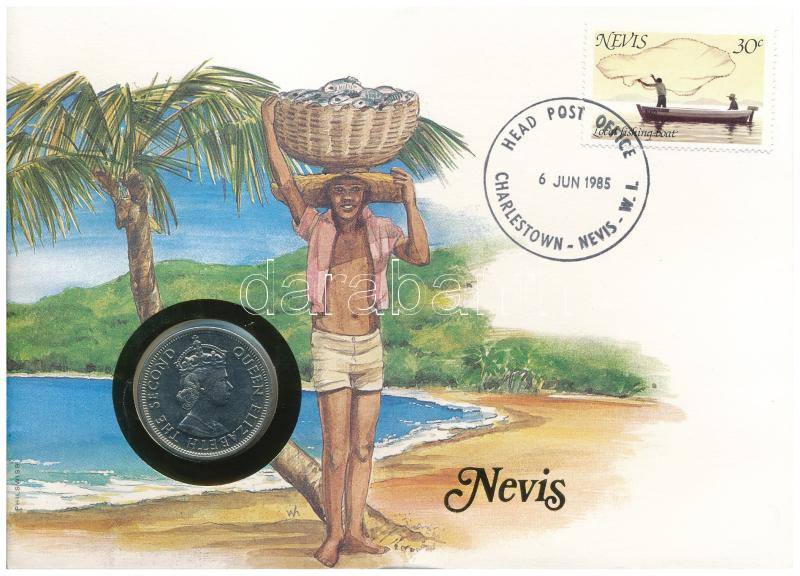 Kelet-Karibi Államok / Nevis 1965. 50c Cu-Ni "II. Erzsébet" ... https://www.darabanth.com/en/444-Online-auction/444.0/Numismatics/Envelopes-with-Coins-and-Banknotes~1000004/Kelet-Karibi-Allamok-Nevis-1965-50c-Cu-Ni-II-Erzsebet-felbelyegzett-boritekban-belyegzC3~II2908300