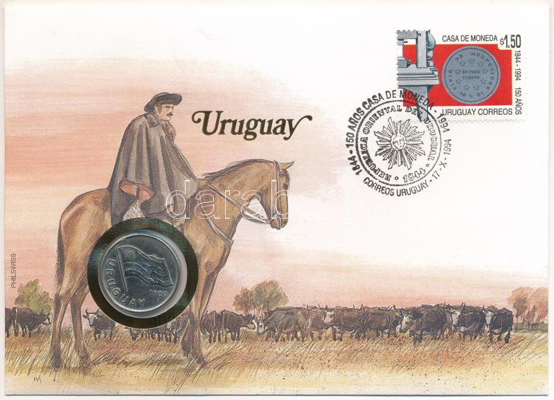 Uruguay 1980. 1P Cu-Ni felbélyegzett borítékban, bélyegzéssel, német n... https://www.darabanth.com/en/444-Online-auction/444.0/Numismatics/Envelopes-with-Coins-and-Banknotes~1000004/Uruguay-1980-1P-Cu-Ni-felbelyegzett-boritekban-belyegzessel-nemet-nyelvu-leirassal-TUNC~II2928797