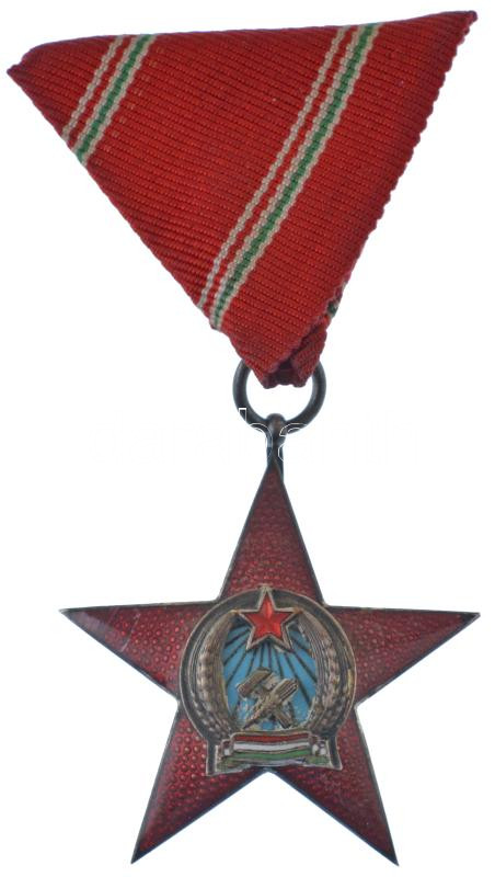 1949. "A Magyar Népköztársasági Érdemérem ezüst fokozata" ezüstözött, zománcozott bronz kitüntetés szalagsávval, eredeti sérült Rákosi címeres tokban T:AU NMK 535.