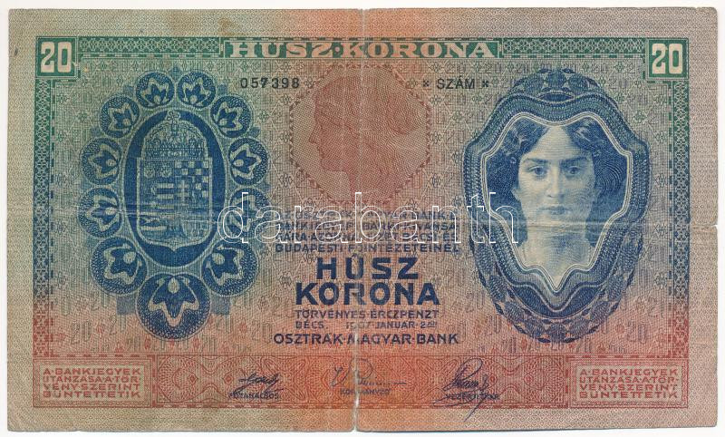 https://www.darabanth.com/en/444-Online-auction/444.0/Numismatics/Hungarian-Banknotes~1000007/1907-20K-1699-057398-TF-VG-hajtas-menten-szakadas-folt--Hungary-1907-20-Korona-1699-057~II2928975