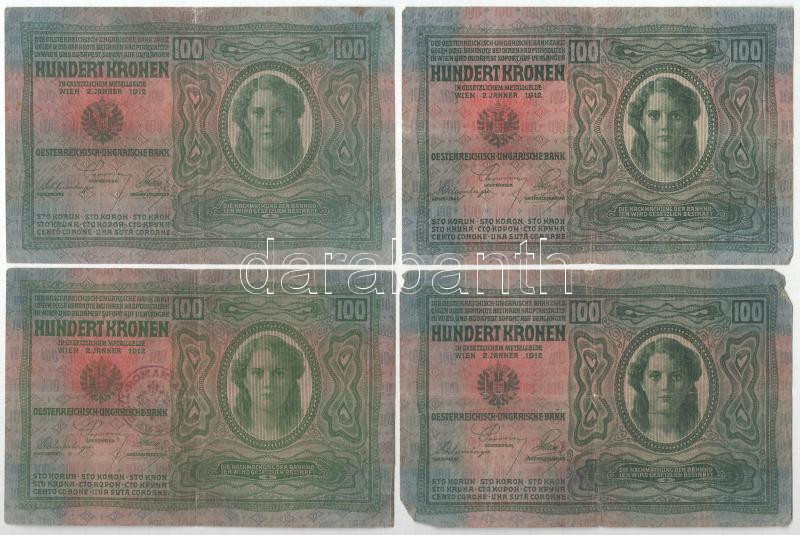 1912. 100K (4xklf) különböző, magyar, román és orosz felülbélyegzésekkel T:F,VG