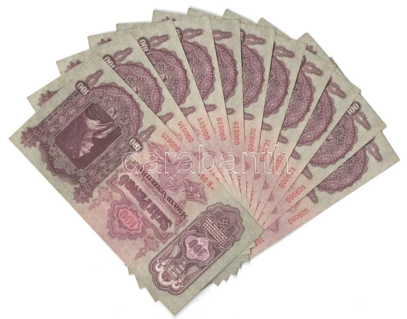 https://www.darabanth.com/en/444-Online-auction/444.0/Numismatics/Hungarian-Banknotes~1000007/1930-100P-11x-sorszamkovetok-E-091-000615-E-091-000625-TUNC-AU~II2929118