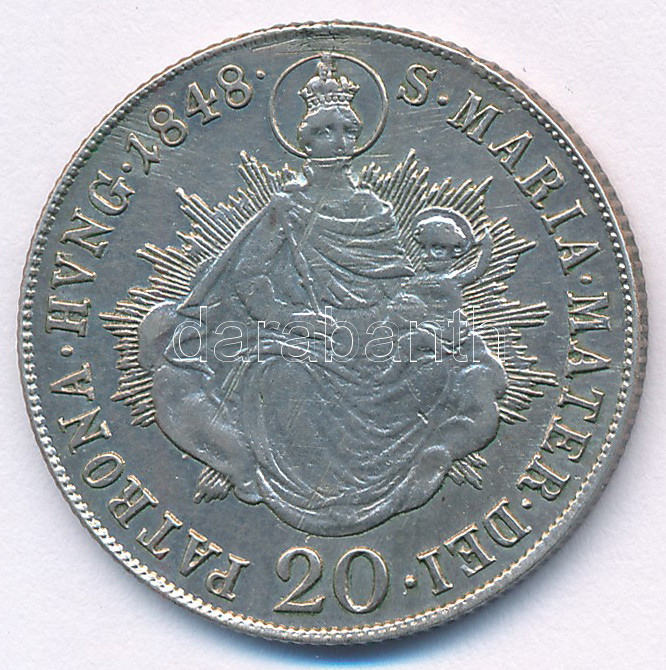 https://www.darabanth.com/en/444-Online-auction/444.0/Numismatics/Hungarian-coins-and-coins-with-Hungarian-mint-marks~1000008/1848B-20kr-Ag-V-Ferdinand-TXF-juszt-kis-fulnyom-Hungary-1848B-20-Kreuzer-Ag-Ferdinand-V-C~II2926717