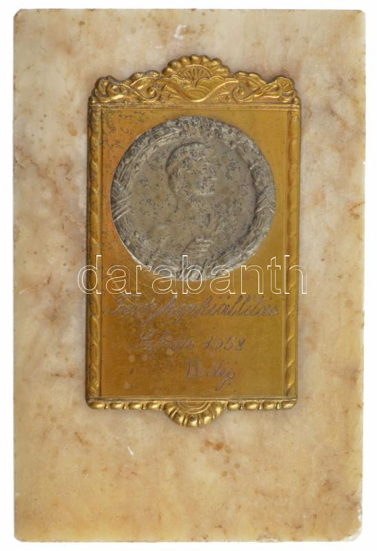 1958. "Fényképkiállítás Székesfehérvár 1958 - II. díj" bronz díjplakett (39x68) érem rátéttel (30mm), márványtalapzathoz rögzítve (65x100x15mm) T:2,2-
