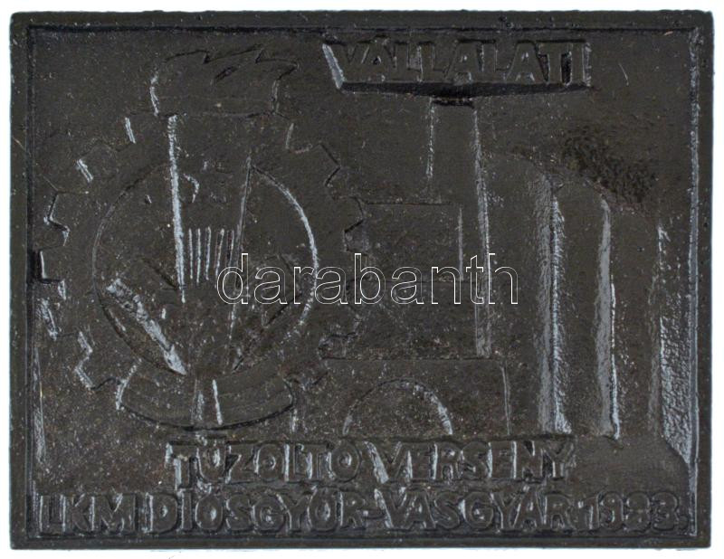 1983. "Vállalati Tűzoltó Verseny - LKM (Lenin Kohászati Művek) Diósgyőr-Vasgyár 1983" öntött fém plakett (111x88mm) eredeti, sérült tokban T:XF