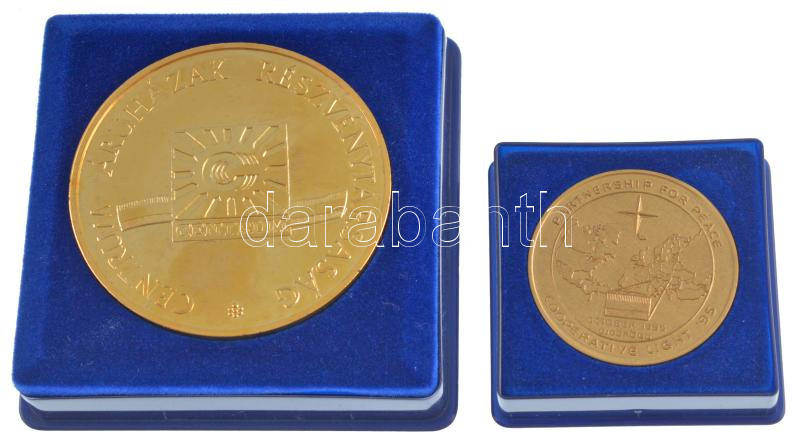 1993. "Centrum Áruházak Részvénytársaság / Október 4-16. "II. Magyar Áruk Hete - 1993. október 4-16." emlékérem tokban (65mm) + 1995. "Partnership for Peace - Cooperative Light (Partnerség a békéért - közös fény) Újdörögd egyoldalas emlékérem tokban (43mm) T:1