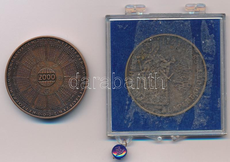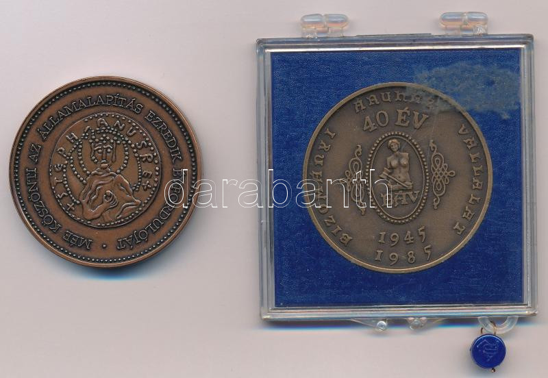 Description: Bognár György (1944-) 1985. "40 éves a BÁV / Mária Terézia" kétoldalas bronz emlékérem plombált "ÁPV" plasztik tokban (42,5mm) + 2000. "MÉE köszönti az Államalapítás ezredik évfordulóját" kétoldalas bronz naptárérem (42,5mm) T:AU